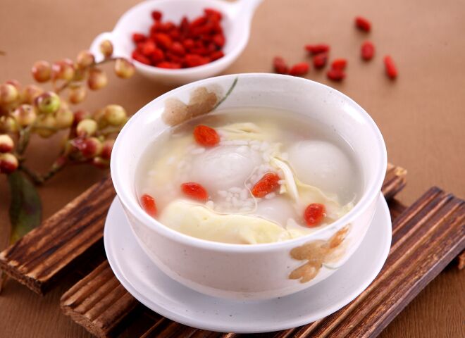芝麻湯圓煮熟,放入枸杞打顆蛋花